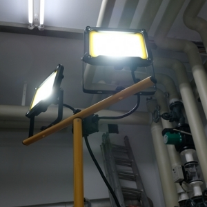 Höhenverstellbarer (bis max. 160 cm, inkl. Strahler) LED Fluter mit Stativ ideal für den Einsatz auf Baustellen, für Heim- und Handwerker und viele andere Einsatzgebiete im Außen- und Innenbereich
