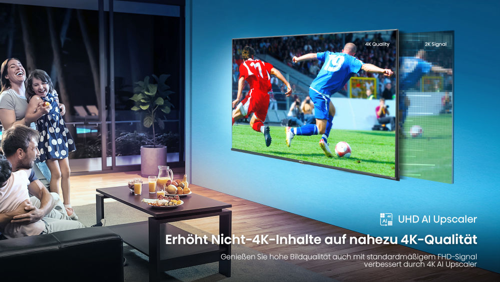 Die UHD AI Upscaling Technologie optimiert das FHD-Signal auf nahezu 4K-Qualität. Anstatt einfach jedes Pixel 4-fach hochzurechnen, analysiert die Hisense UHD AI Upscaling Technologie das Farbangrenzender Pixel und optimiert die Farbgebung Szene für Szene.