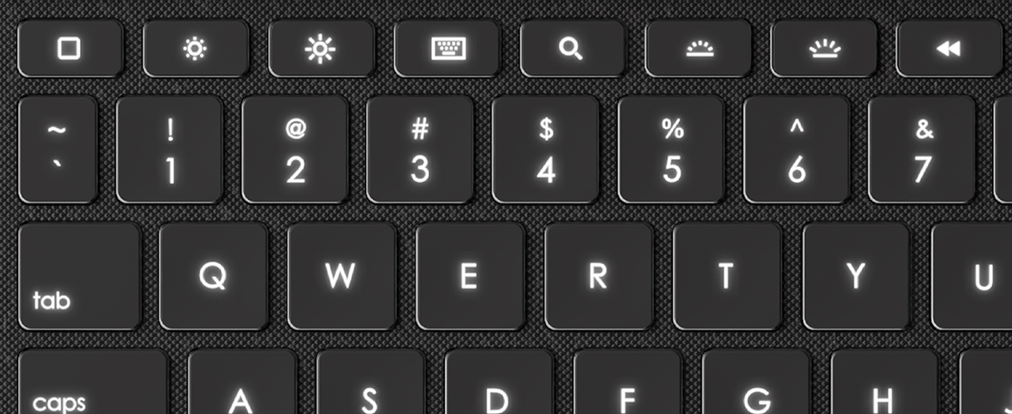 Beleuchtete Tasten mit einstellbarer Helligkeit sorgen dafür, dass Sie immer alles gut sehen können, egal ob im Schlafzimmer, im Flugzeug oder in einer anderen Umgebung mit wenig Licht.