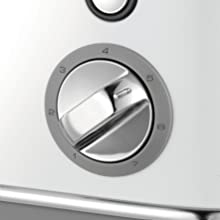 Mit der Bräunungskontrolle können Sie einstellen, wie stark das Brot getoastet wird. Zudem ermöglicht sie das Auftauen und Wiederaufwärmen von Toast.