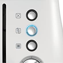 Der Evoke Toaster hat beleuchtete Knöpfe für die einfache Bedienung.