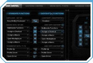 Wie bei der Shift-Taste ermöglicht die Easy-Shift[+] -Funktion eine Doppelbelegung ausgewählter Tasten. Dafür stehen 3 Easy-Shift[+] Zonen 1,2,3) mit 36 Makrofunktionen zur Verfügung.