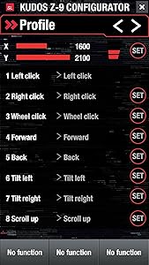 Die Auswirkungen der Änderungen durch die App werden sofort spürbar. Unter anderem maximieren Sie die effektive Wirkung der Kudos Z-9 , indem Sie über die selbsterklärende Oberfläche Profile wechseln, Tasten neu belegen und die Sensor-Auflösung verändern.