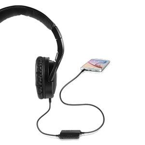 - Bequeme Lautstärke- und Klangeinstellung sowie Mikrofon-Stummschaltung per Kabelfernbedienung