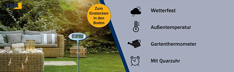 TFA Dostmann Orion Digitales Design Gartenthermometer