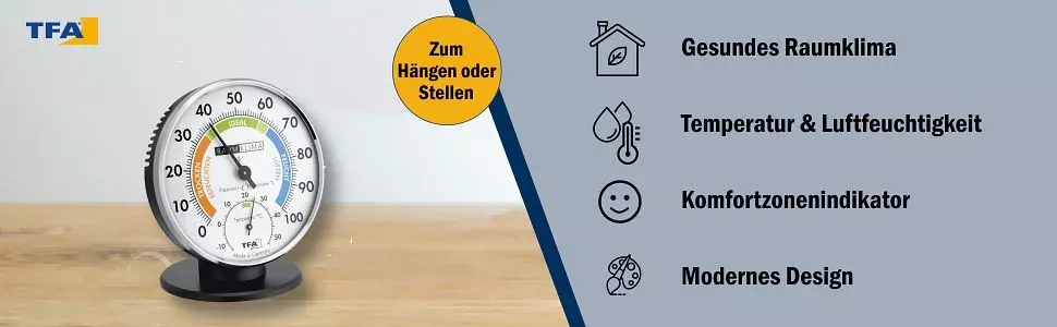 TFA Dostmann Präzisions Thermo Hygrometer zur Raumklimakontrolle Analog mit Komfortzonen Kontrolle von Temperatur und Luftfeuchtigkeit